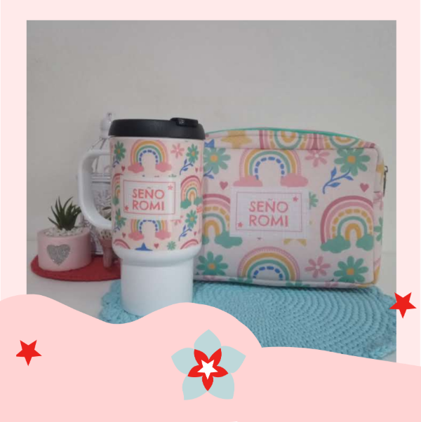 Set de Portacosméticos con fuelle + Jarro hermético haciendo juego.