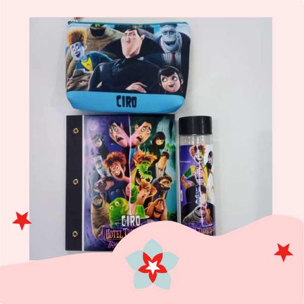 Botella de plástico transparente personalizada con aplique en vinilo.